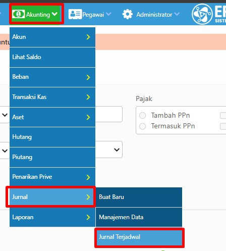 Masuk ke menu Akuntansi - Jurnal - Jurnal Terjadwal