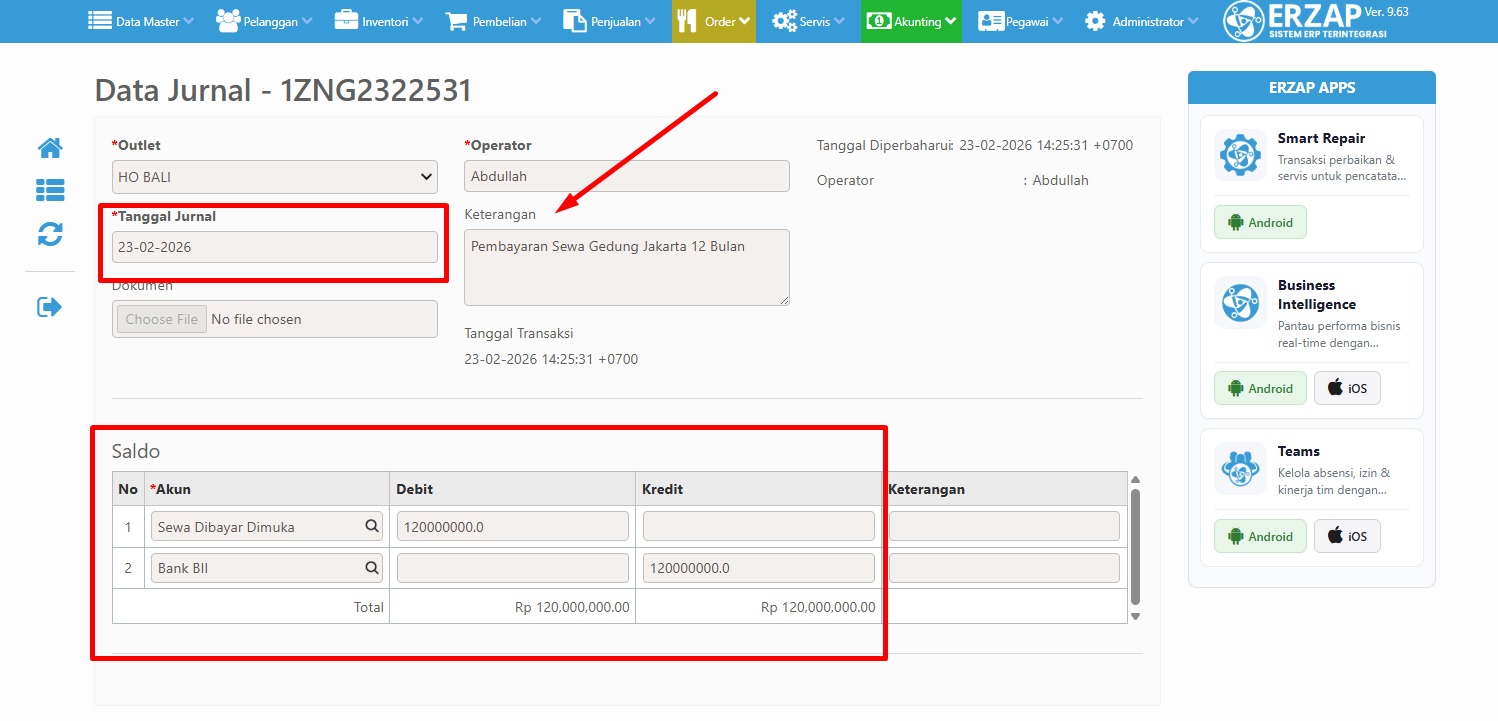 5.Setelah semua data terisi tekan/klik simpan pada ikon disket untuk memproses semua data yang sudah dibuat tadi.