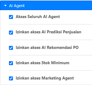 Setelah itu, klik Simpan untuk menyimpan perubahan. Dengan begitu, user tersebut sudah memiliki hak akses AI Agent di Erzap ERP.