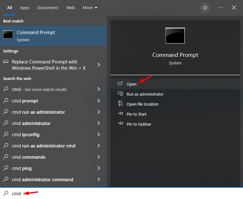 cmd, lalu pilih Open.