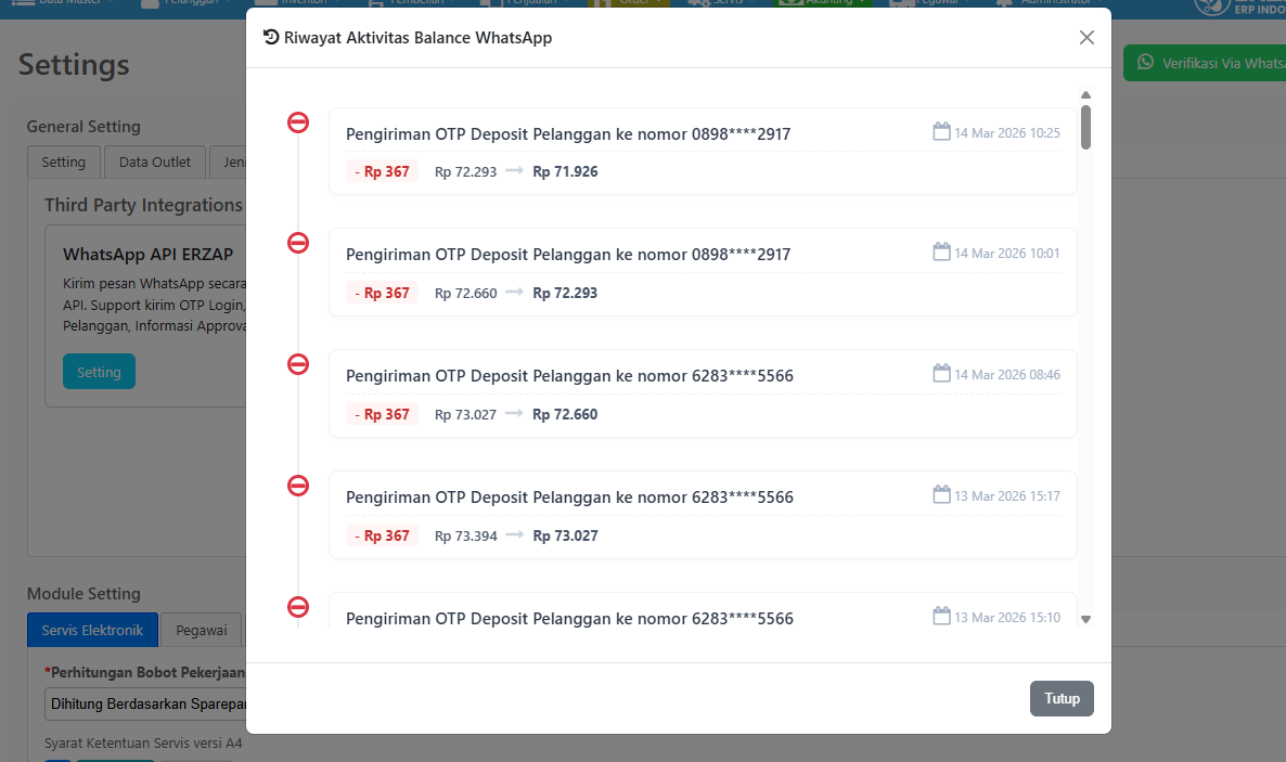 - Riwayat Aktivitas Balance WhatsApp