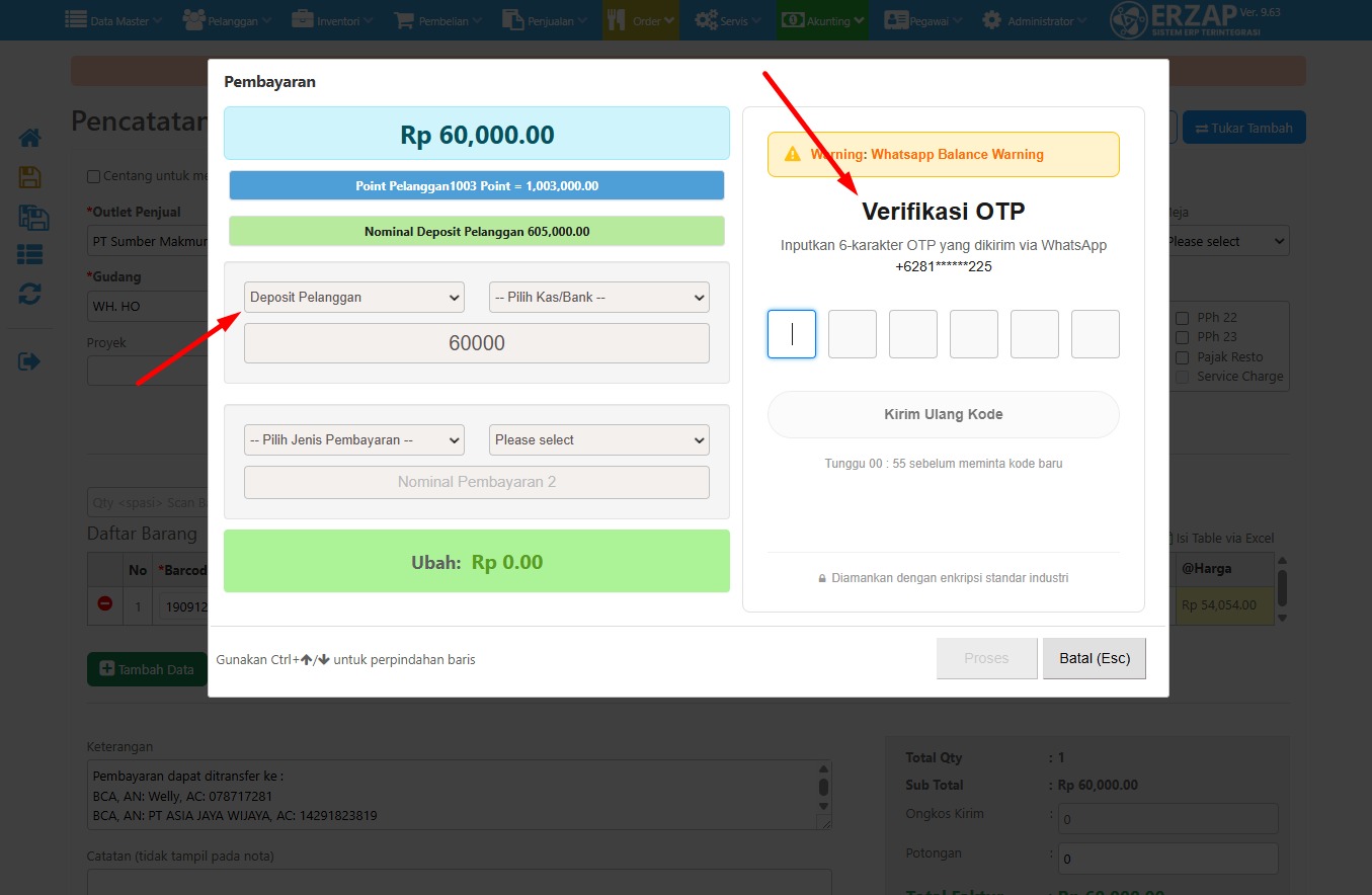 Dengan demikian setiap penggunaan Deposit atau Poin, pelanggan wajib menginformasikan Kode OTP yang diterima di WhatsApp ke kasir yang melayani.