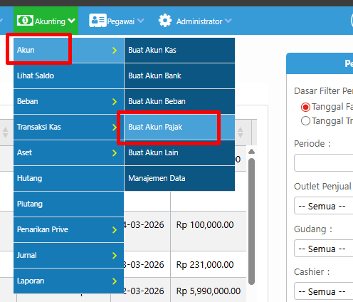 -Cara buat Akun Pajak di ERZAP : Buka modul Akunting → Akun → Buat Baru Akun Pajak → Isi Kolom sesuai kebutuhan→ Simpan